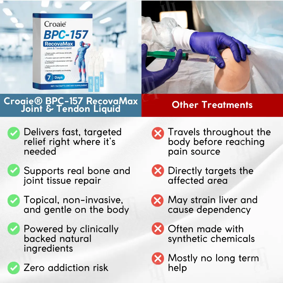 Unlike synthetic painkillers that only mask symptoms, Croaieยฎ BPC-157 RecovaMax Joint & Tendon Liquid works in harmony with your bodyโs own healing processes, restoring joint health at the cellular level.