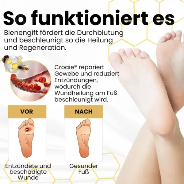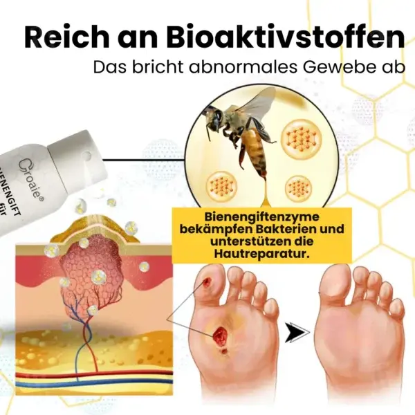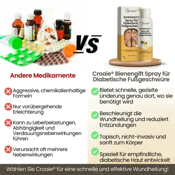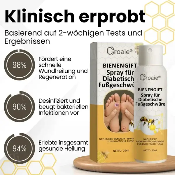 Als Martin das Croaie® Bienengift Spray für Diabetische Fußgeschwüre entdeckte, veränderte sich sein Leben. Dieses innovative Produkt kombiniert die uralte Weisheit des Bienengiftes mit der Präzision der modernen Wissenschaft, um eine leistungsstarke Lösung zu schaffen, die speziell auf diabetische Fußkomplikationen abzielt.